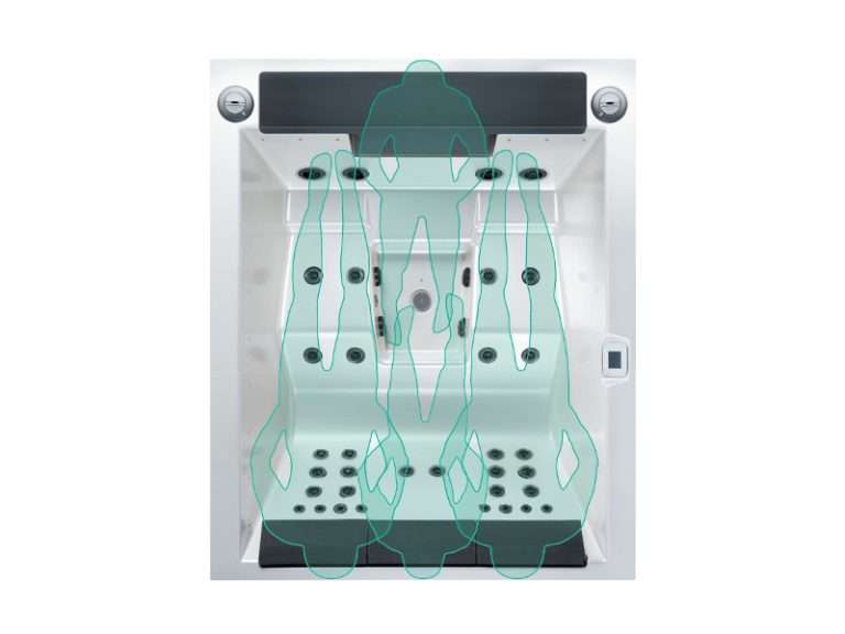 Il comprend deux places allongées et deux sièges supplémentaires pour une expérience d’hydromassage relaxante, complétée par un éclairage d’ambiance coloré au niveau de l’eau. Comme tous les spas de la série Lounge, il est équipé d’un système d’éclairage extérieur LED pouvant également illuminer une terrasse ou un jardin.